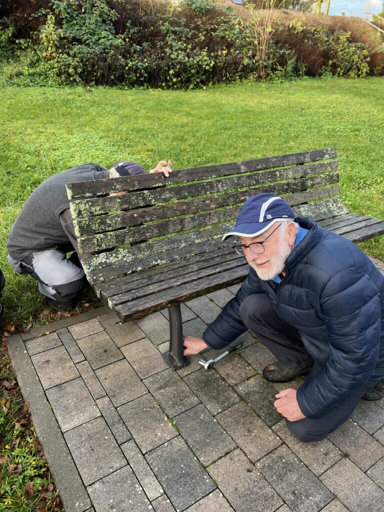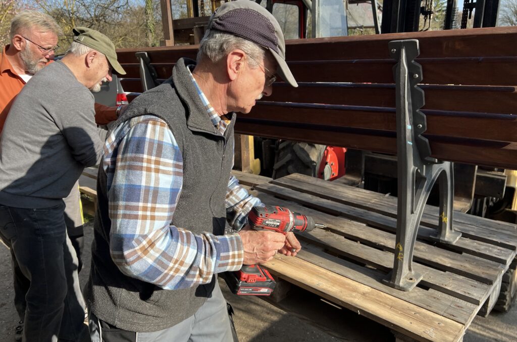Projektabschluß termingerecht zum Ende des Winters: alle Bänke stehen wieder an ihrem angestammten Platz – Hinsetzen!